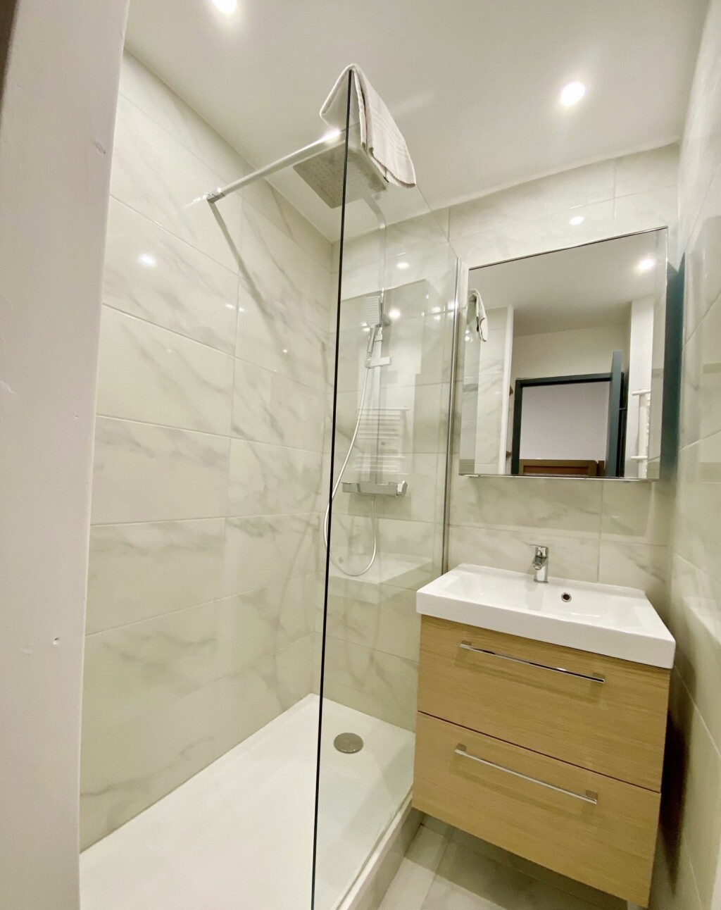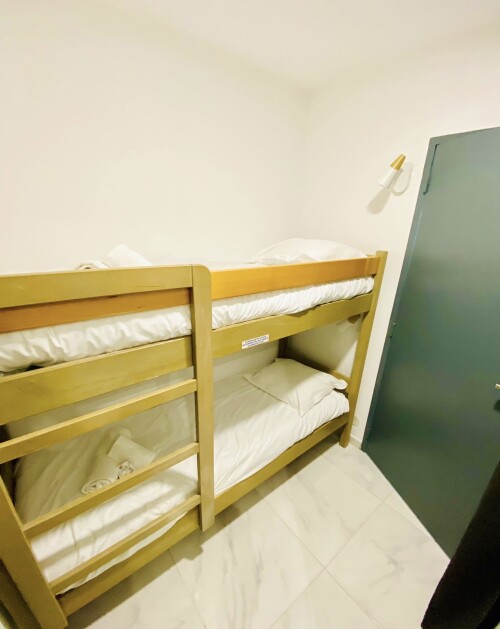 Le studio compte 4 couchages Le salon/salle à manger est équipé de 2 lits simples qui peuvent former un lit double et de lits superposés dans l’entrée. Vous trouverez également une kitchenette équipée de plaques de cuisson, micro ondes, réfrigérateur et tout le nécessaire pour cuisiner. Dans l’entrée, vous trouverez…