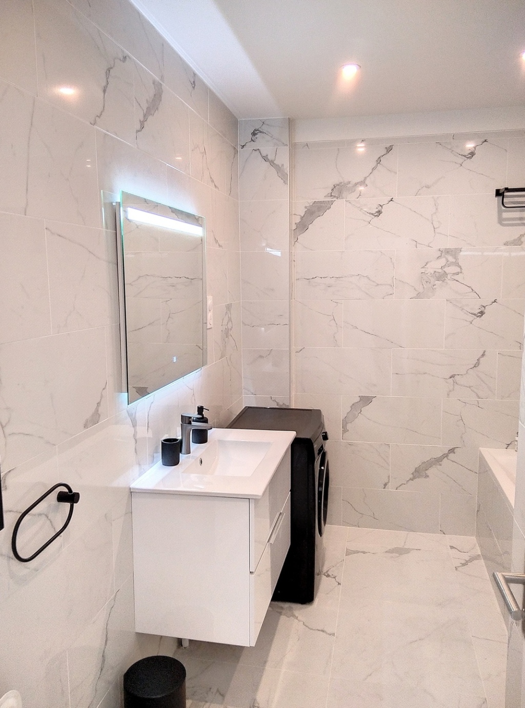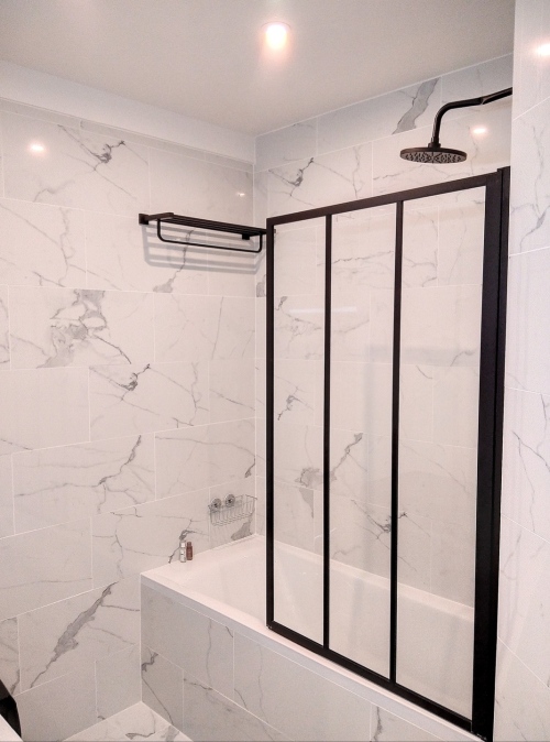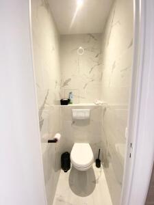Dans l'entrée, vous trouverez un espace de rangement supplémentaire ainsi que la salle d'eau équipée d'une baignoire. Les toilettes sont indépendantes.