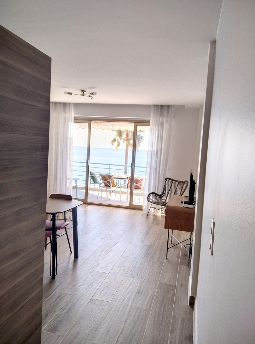 Cet appartement de 45 m2 rénové offre un bel espace dans la pièce de vie principale et offre une vue sur la mer.
