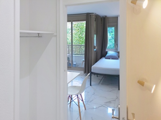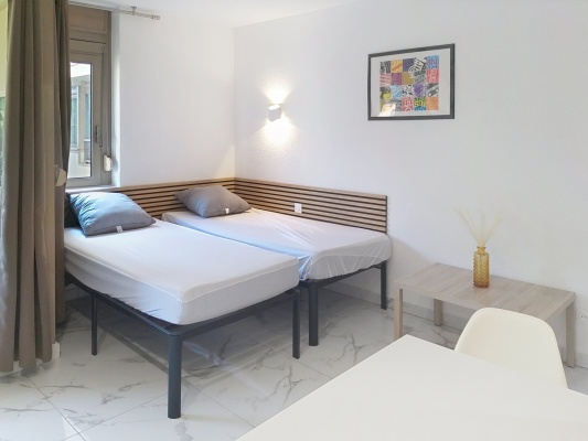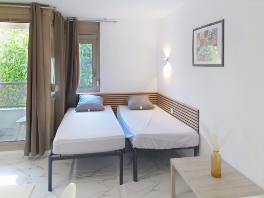 L’appartement est située au 1er étage d’une résidence sécurisée. Ce studio de 23m2 peut accueillir 4 personnes, il offre une vue sur le jardin avec une petite loggia.