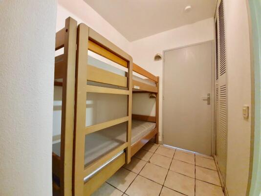 Le studio compte 4 couchages Le salon/salle à manger est équipé de 2 banquettes simples qui peuvent former un lit double et de lits superposés dans l’entrée. Vous trouverez également une kitchenette équipée de plaques de cuisson, micro ondes, réfrigérateur et tout le nécessaire pour cuisiner. Dans l’entrée, vous trouverez…