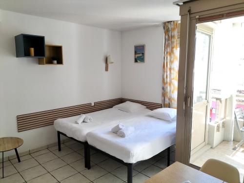 L’appartement est située au 2 ème étage d’une résidence sécurisée. Ce studio de 23m2 peut accueillir 4 personnes, il offre une vue sur la rue depuis le balcon