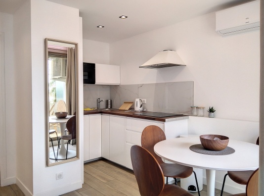 La Résidence se situe à 100 mètres des plages de sable fin de Juan les Pins Cet appartement de 28 m2 situé au 5ème étage est entièrement rénové et il offre un bel espace dans la pièce de vie et une vue dégagée sur la ville. L'appartement est équipé d'un…