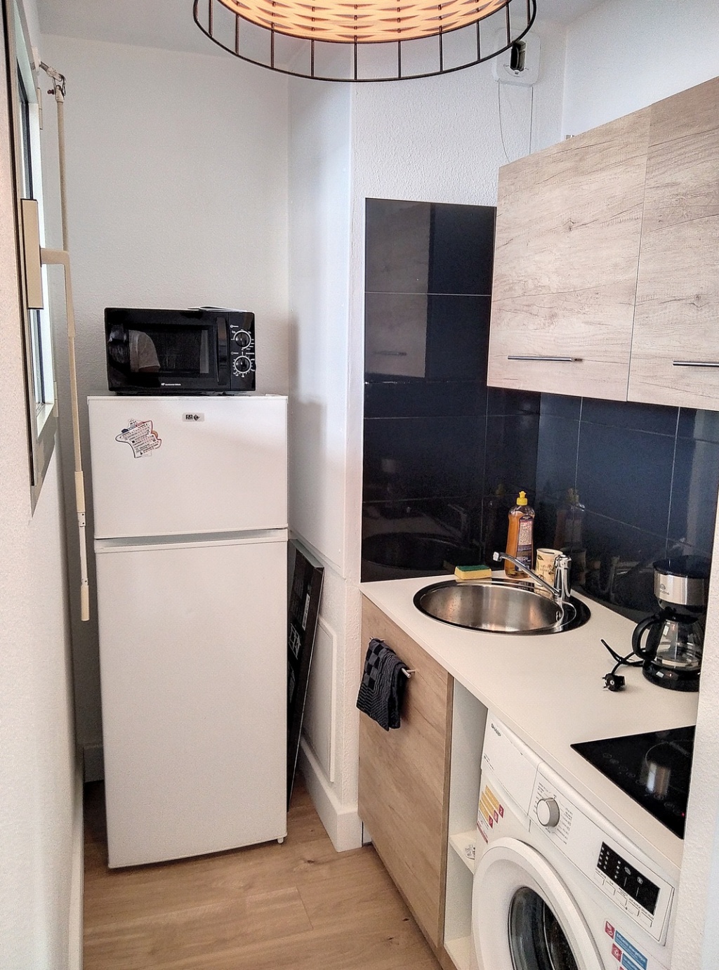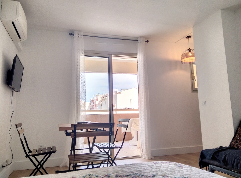 L’appartement est située au 3ème étage d’une résidence sécurisée. Ce studio de 22m2 peut accueillir 3 personnes, il offre une vue sur la ville et la mer depuis sa belle terrasse