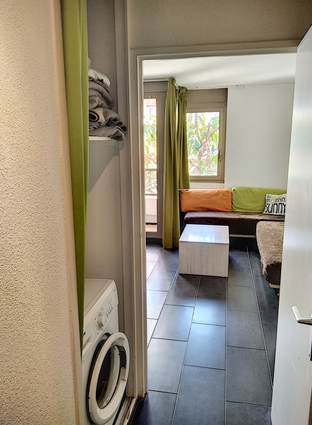 Le studio compte 4 couchages Le salon/salle à manger est équipé de 2 lits simples qui peuvent former un lit double et de lits superposés dans l’entrée. Vous trouverez également une kitchenette équipée de plaques de cuisson, micro ondes, réfrigérateur et tout le nécéssaire pour cuisiner. Dans l’entrée, vous trouverez…