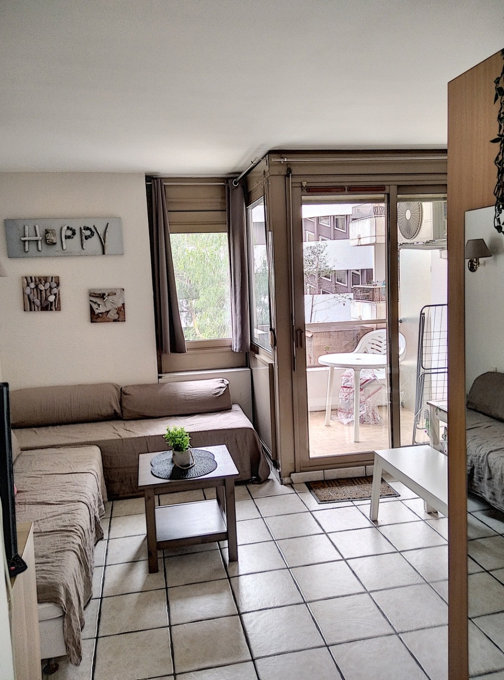 L’appartement est située au 2ème étage d’une résidence sécurisée. Ce studio de 23m2 peut accueillir 4 personnes, il offre une vue sur le jardin depuis le balcon