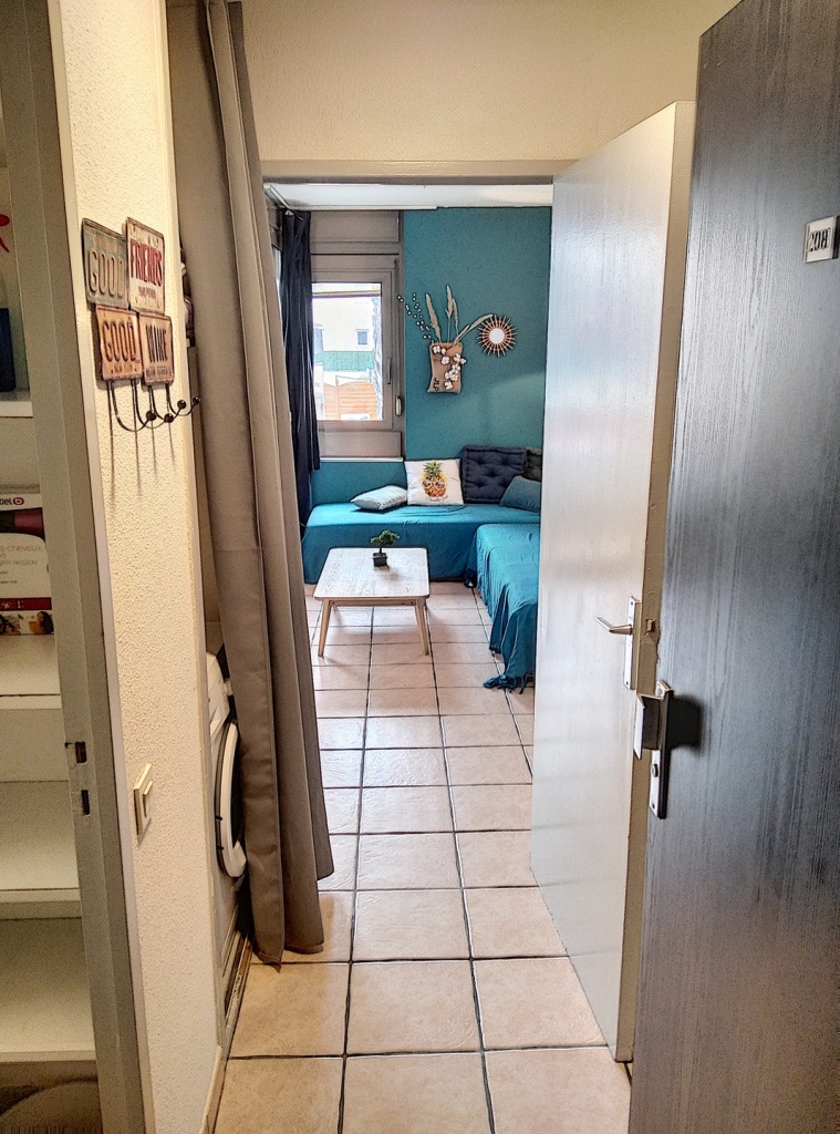 Le studio compte 4 couchages. Le salon/salle à manger est équipé de 2 banquettes simples qui peuvent former un lit double et 2 lits superposés dans l'entrée. Vous trouverez également une kitchenette équipée de plaques de cuissons, micro ondes, réfrigérateur et tout le nécéssaire pour cuisiner. Dans l'entrée, vous trouverez…