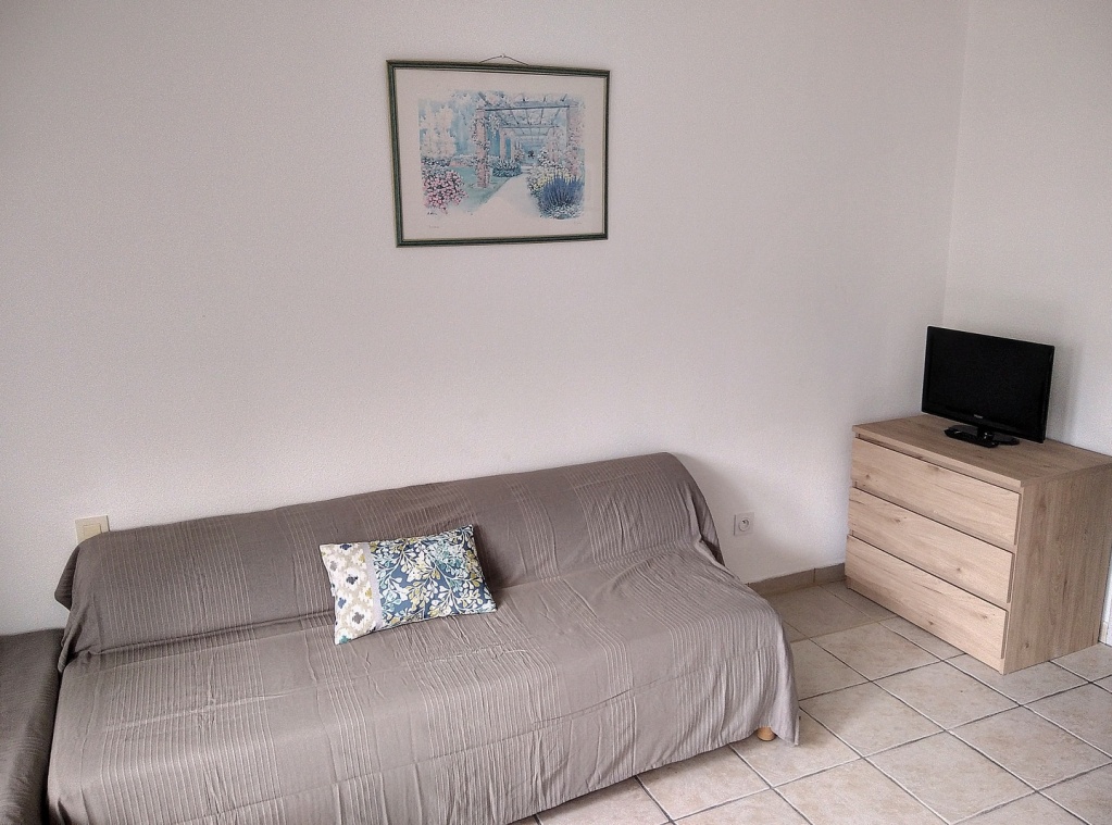 Le studio compte 4 couchages Le salon/salle à manger est équipé de 2 banquettes simples qui peuvent former un lit double et de lits superposés dans l’entrée. Vous trouverez également une kitchenette équipée de plaques de cuisson, micro ondes, réfrigérateur et tout le nécéssaire pour cuisiner. Dans l’entrée, vous trouverez…