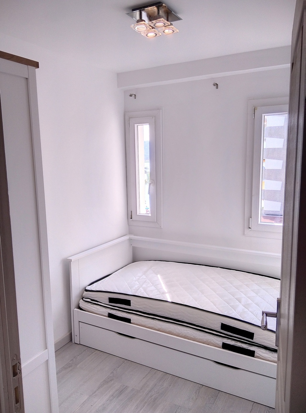 La chambre principale compte 1 lit double, la seconde chambre est équipée d'un lit gigogne 2 places, et d'un espace de rangement.