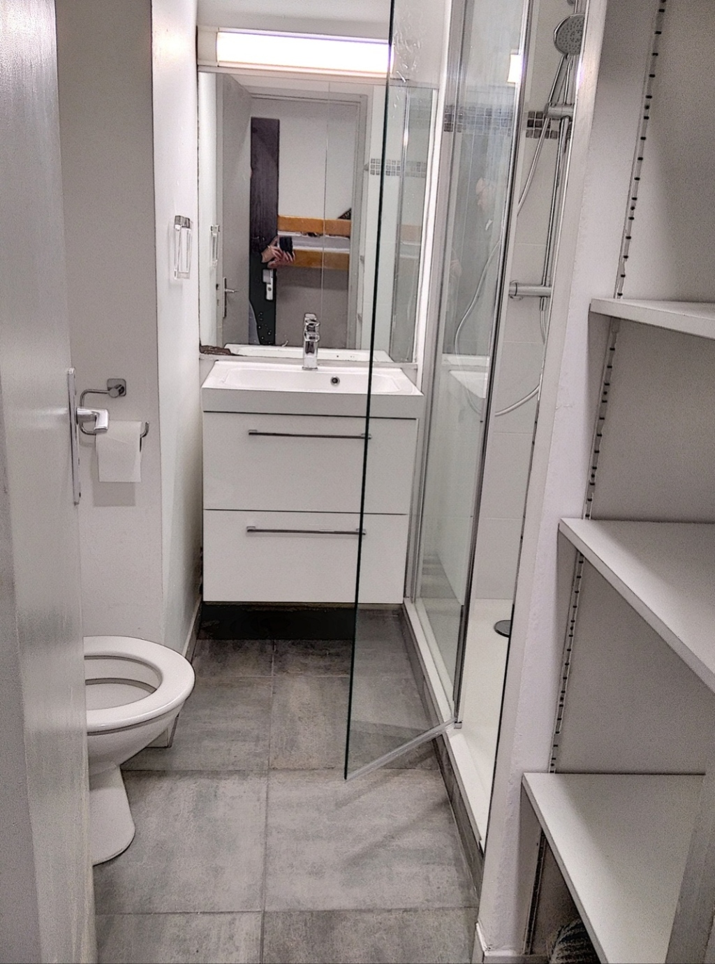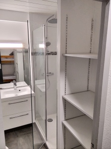 Le studio compte 4 couchages Le salon/salle à manger est équipé de 2 lits simples qui peuvent former un lit double et de lits superposés dans l’entrée. Vous trouverez également une kitchenette équipée de plaques de cuisson, micro ondes, réfrigérateur et tout le nécéssaire pour cuisiner. Dans l’entrée, vous trouverez…