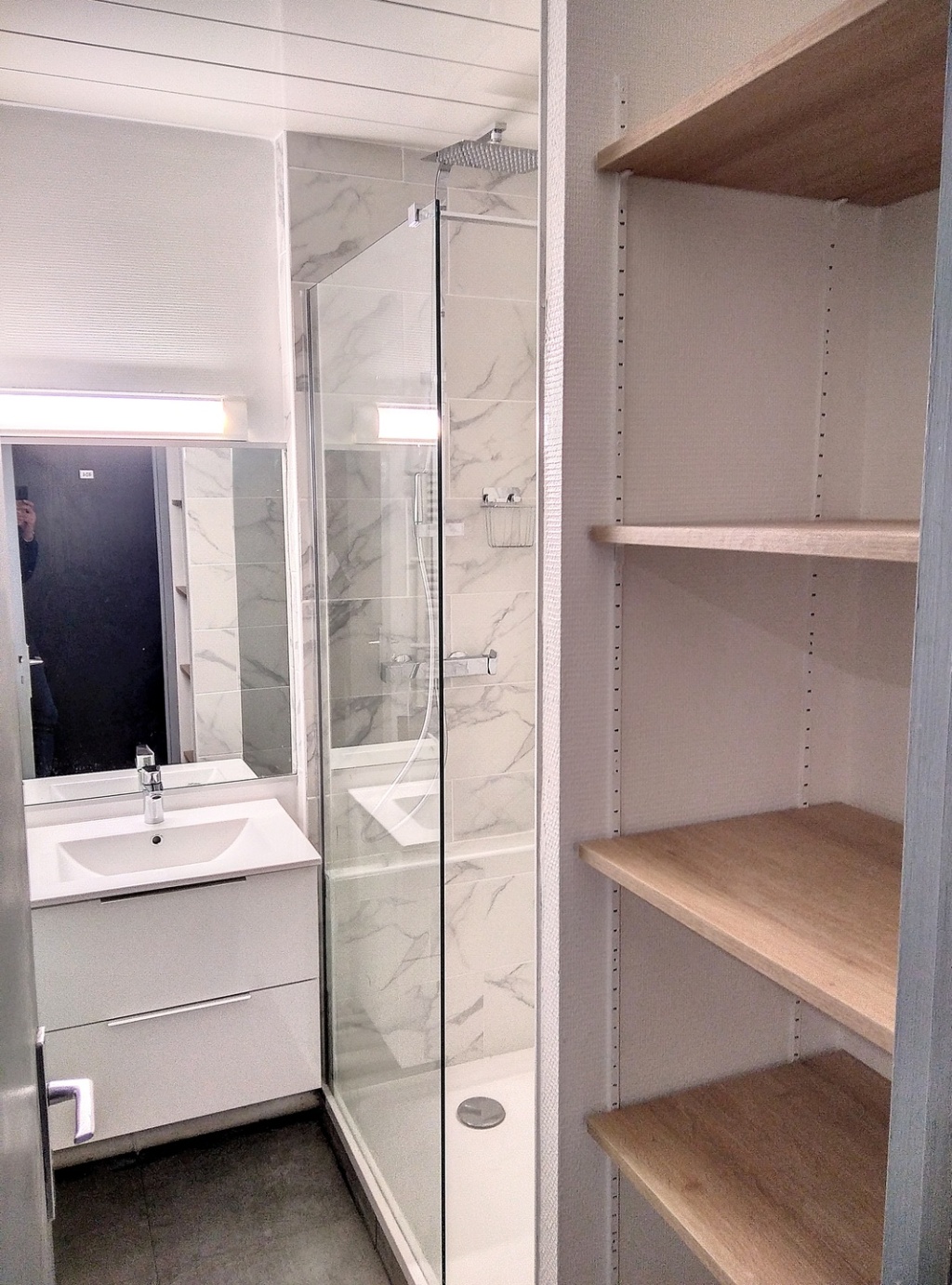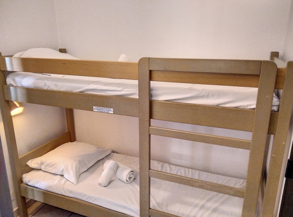 Le studio compte 4 couchages Le salon/salle à manger est équipé de 2 lits simples qui peuvent former un lit double et de lits superposés dans l’entrée. Vous trouverez également une kitchenette équipée de plaques de cuisson, micro ondes, réfrigérateur et tout le nécessaire pour cuisiner. Dans l’entrée, vous trouverez…