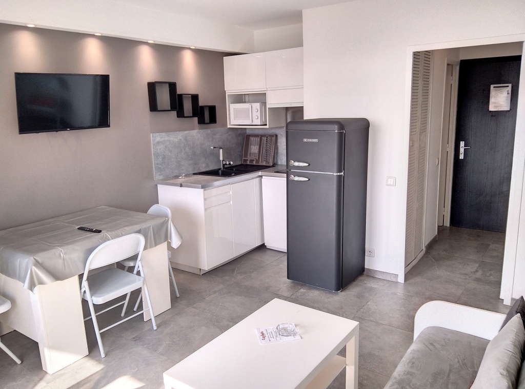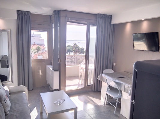 L’appartement est située au 5 ème étage d’une résidence sécurisée. Ce studio de 23m2 peut accueillir 4 personnes, il offre une vue sur la mer depuis le balcon