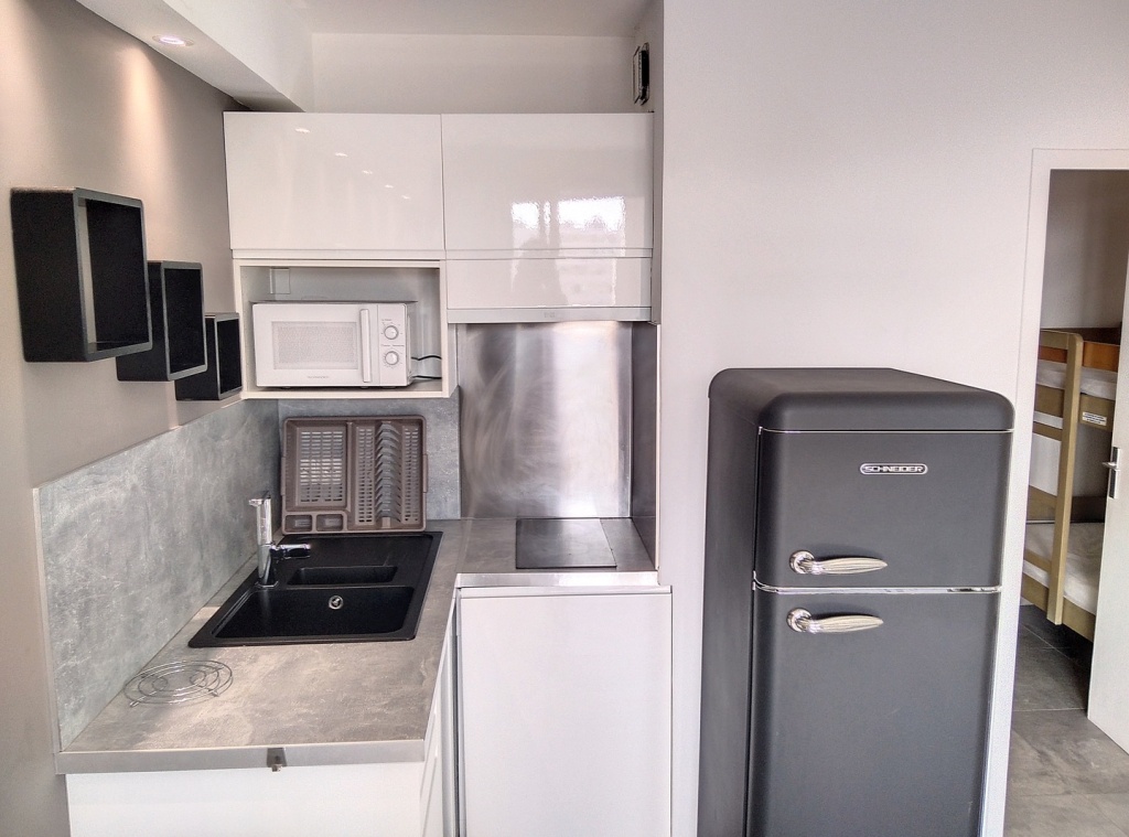 Le studio compte 4 couchages Le salon/salle à manger est équipé d'un meuble-lit et de lits superposés dans l’entrée. Vous trouverez également une kitchenette équipée de plaques de cuisson, micro ondes, réfrigérateur et tout le nécessaire pour cuisiner. Dans l’entrée, vous trouverez un espace de rangement supplémentaire ainsi que la…