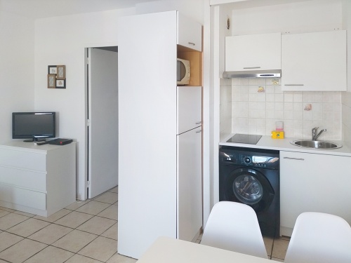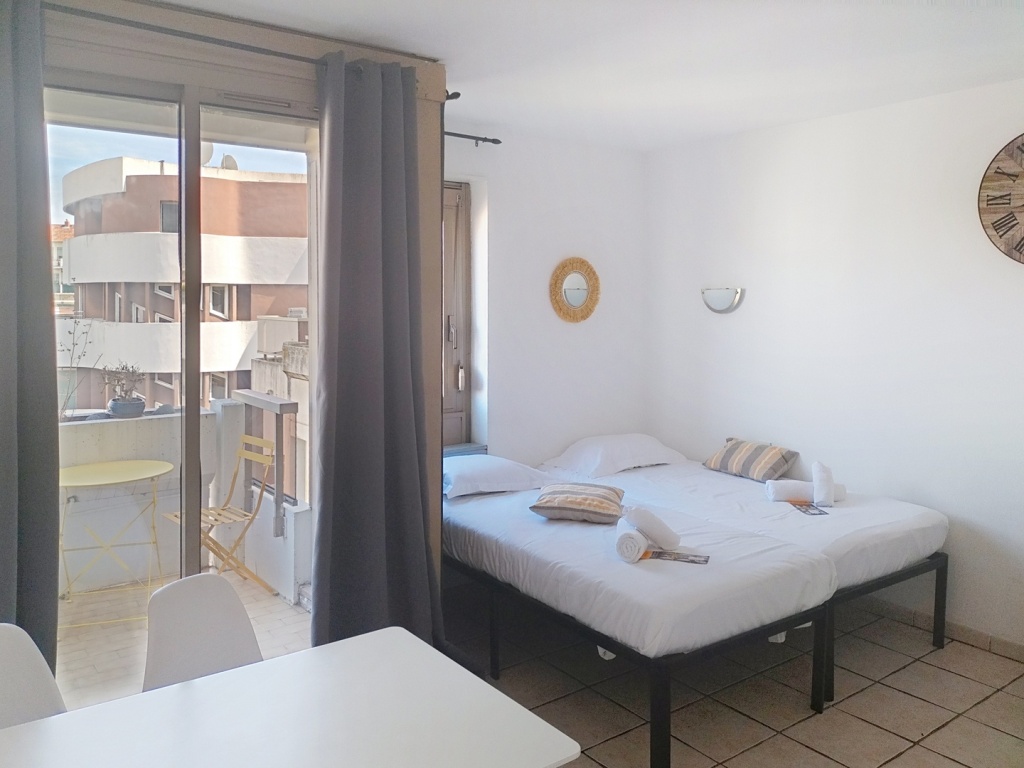 L’appartement est située au 6 ème étage d’une résidence sécurisée. Ce studio de 23m2 peut accueillir 4 personnes, il offre une vue sur le jardin depuis le balcon