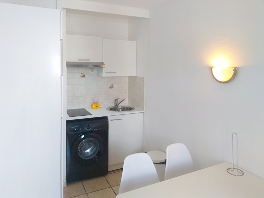 Le studio compte 4 couchages Le salon/salle à manger est équipé de 2 banquettes simples qui peuvent former un lit double et de lits superposés dans l’entrée. Vous trouverez également une kitchenette équipée de plaques de cuisson, micro ondes, réfrigérateur, machine à laver et tout le nécessaire pour cuisiner. Dans…