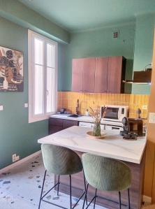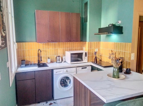Il y a un canapé lit dans le salon, la climatisation, rangements, wifi, une cuisine entièrement équipée et l'appartement tout juste rénové offre une décoration soignée.