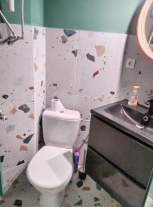 Les toilettes se situent dans la salle d'eau.