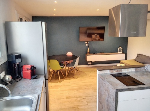 A cozinha está totalmente equipada (forno, micro-ondas, lava-louças, placas elétricas, louça, cafeteira, etc.)