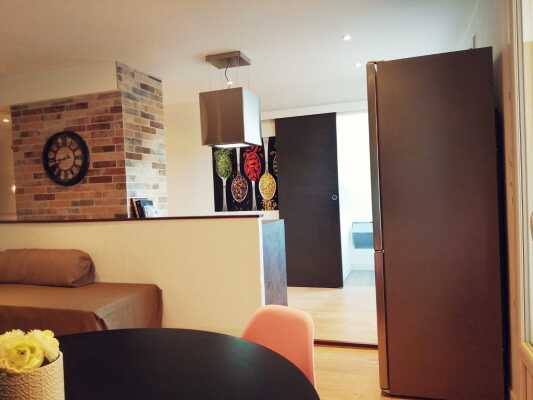 O apartamento de 3 cômodos está totalmente renovado e tem cerca de 56 m².