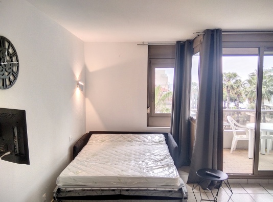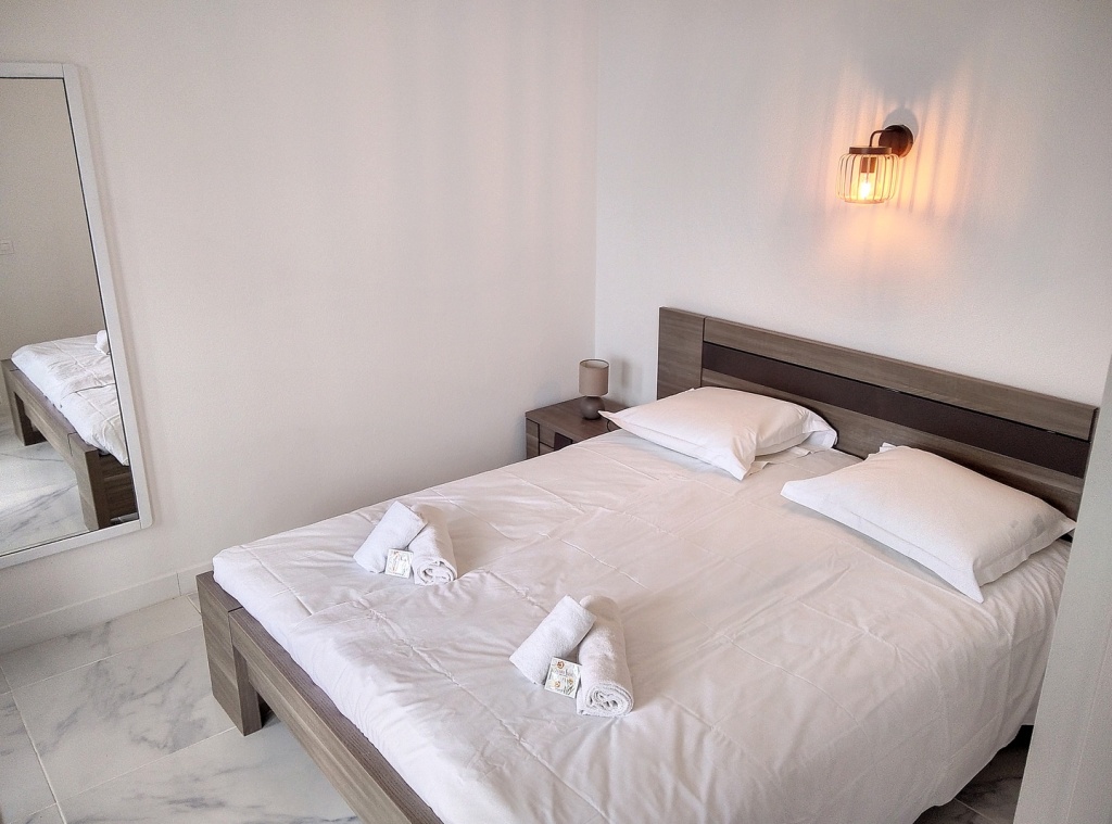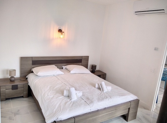 Il y a un lit double 2 places dans la chambre à coucher, une penderie et un accès direct à la terrasse. La chambre est également climatisée.