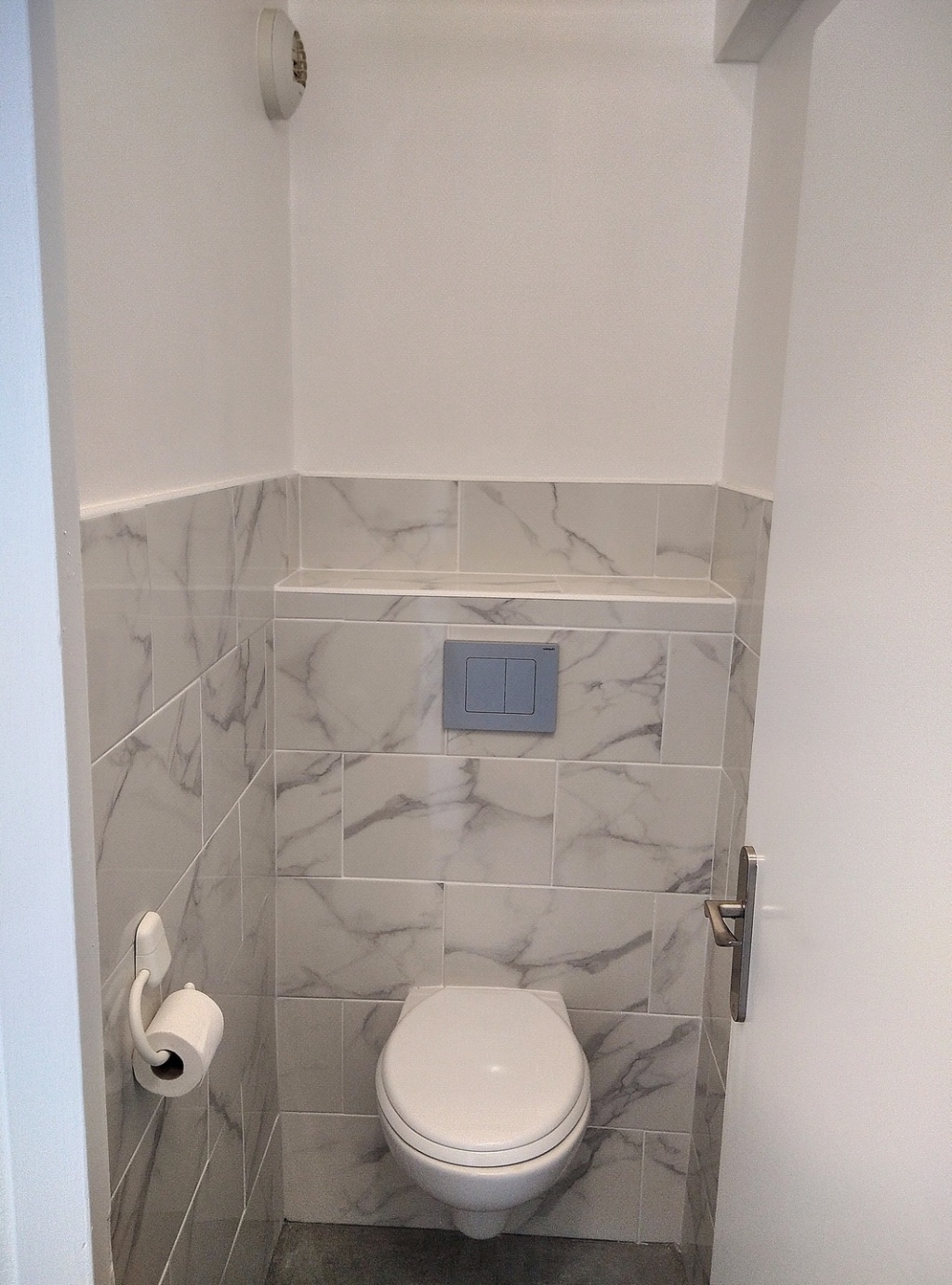 Dans l'entrée, vous trouverez un espace de rangement supplémentaire ainsi que les toilettes.