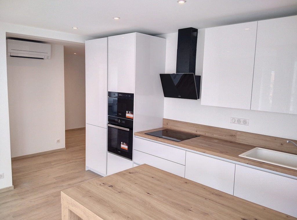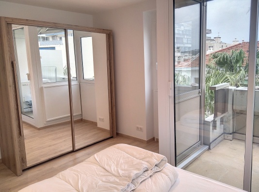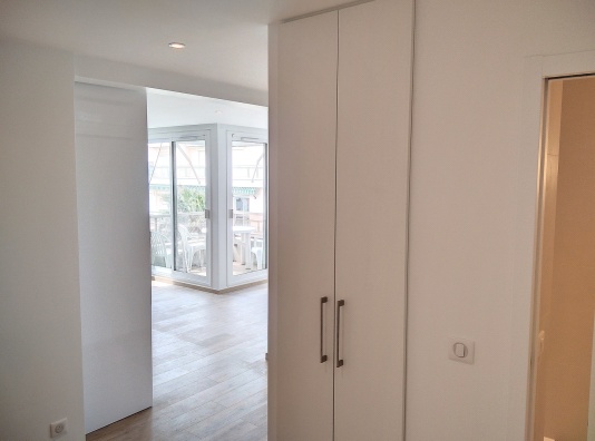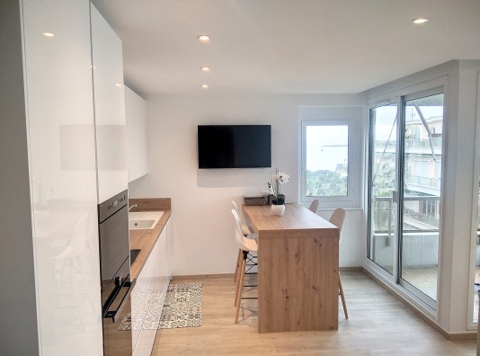Cet appartement de 42 m2 rénové offre un bel espace dans la pièce de vie principale et offre une vue sur la mer.