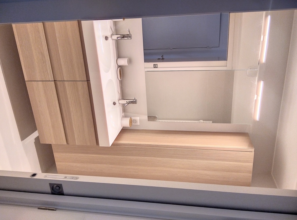 Dans l'entrée, vous trouverez la salle d'eau équipée d'une douche et des toilettes indépendantes.