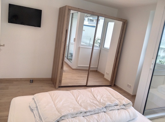 Il y a un lit double dans la chambre, un canapé lit dans l'entrée ainsi qu'un espace de rangement . La chambre est également climatisée et offre un accès à son propre balcon.